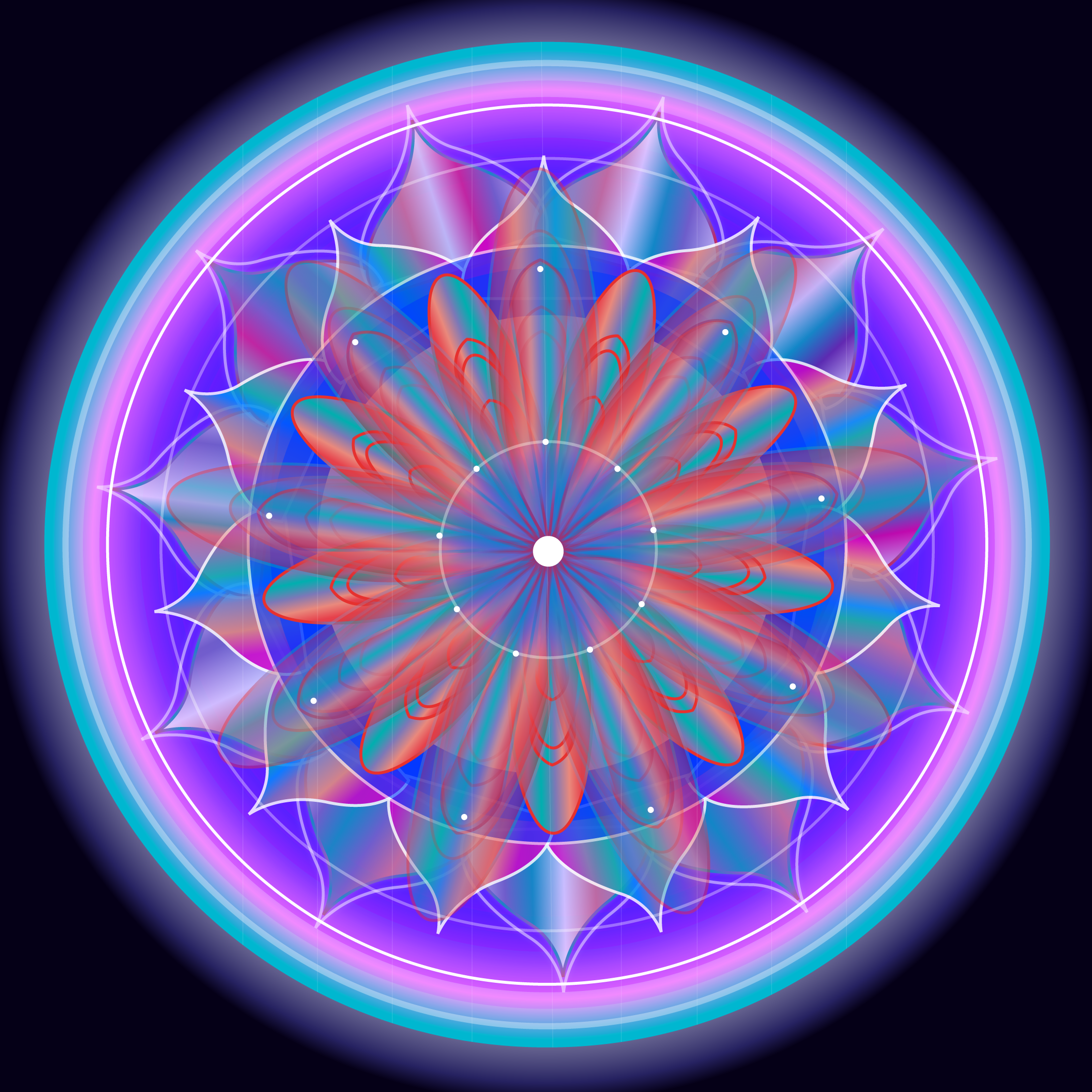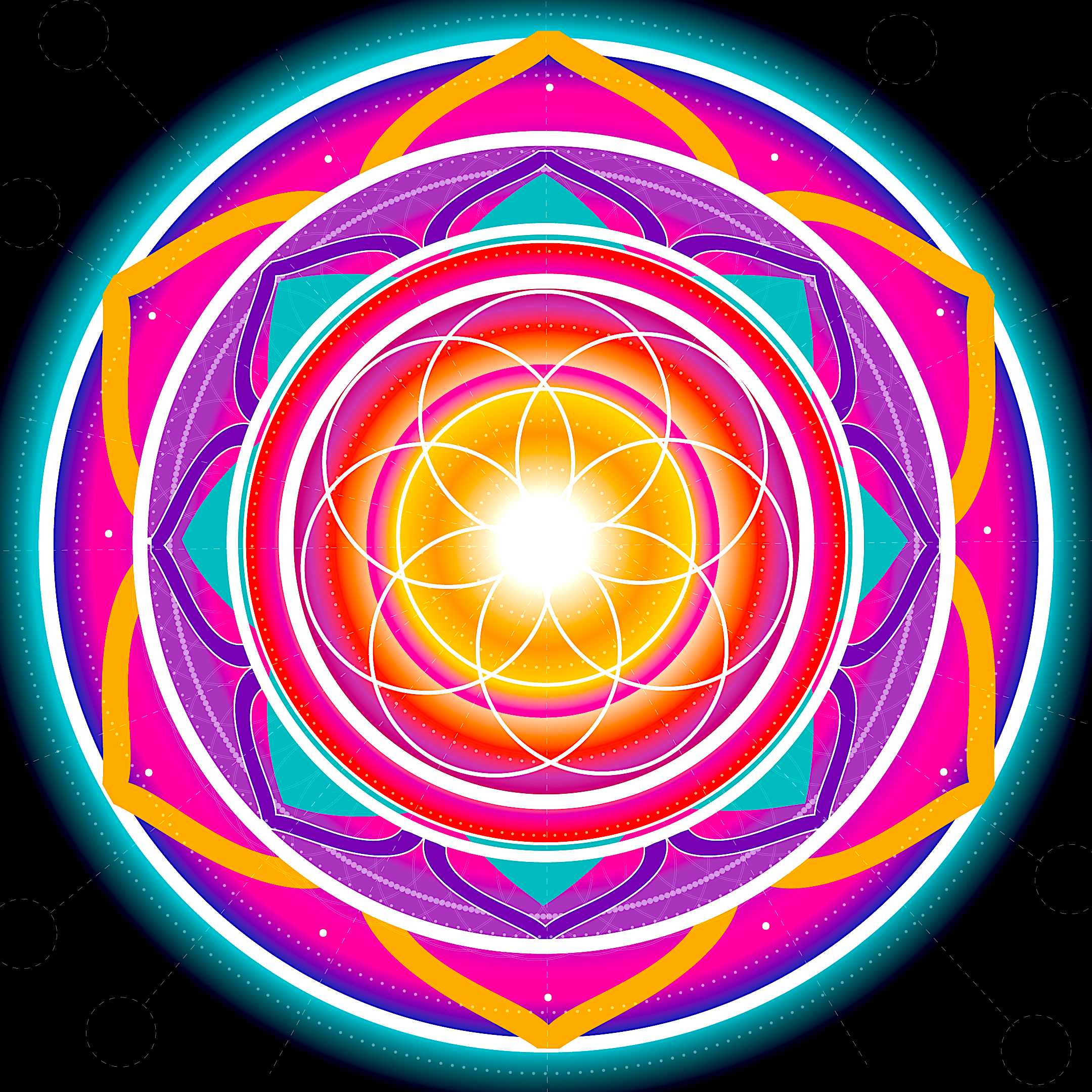 Using your photo, I tune into your psychic energy field (your Aura). I identify the predominant colors and chakra frequencies present in your field. These specific hues are then applied to your geometric map, bringing the "soul-print" to life with the colors of your own energy.